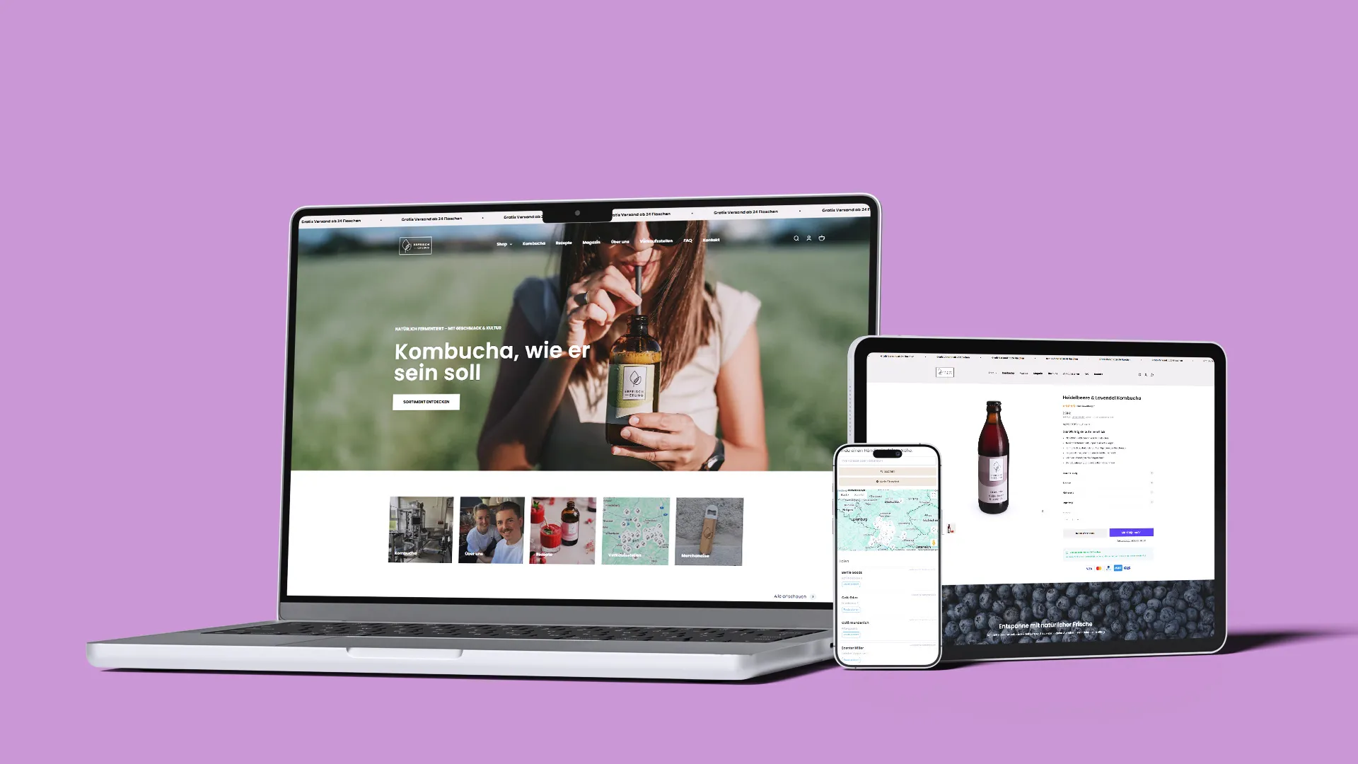 Kompletter Relaunch von Wix zu Shopify –inklusive modernem Design und eigenem Store-Locator. Bester Kombucha auf traditionelle Art gebraut.