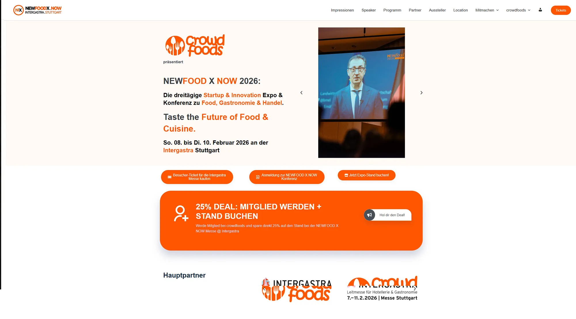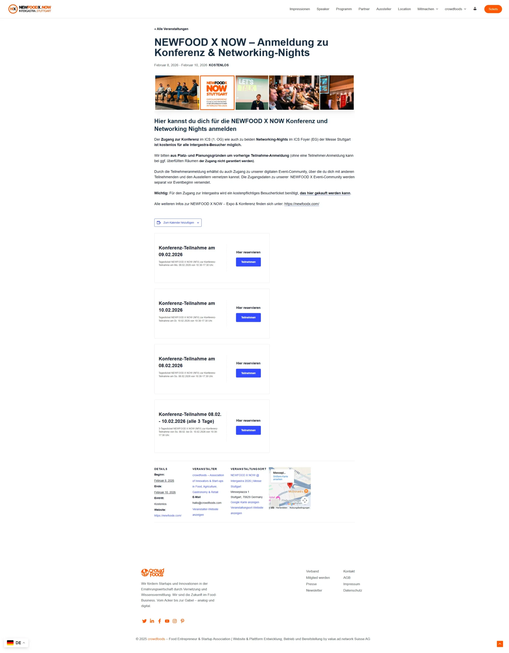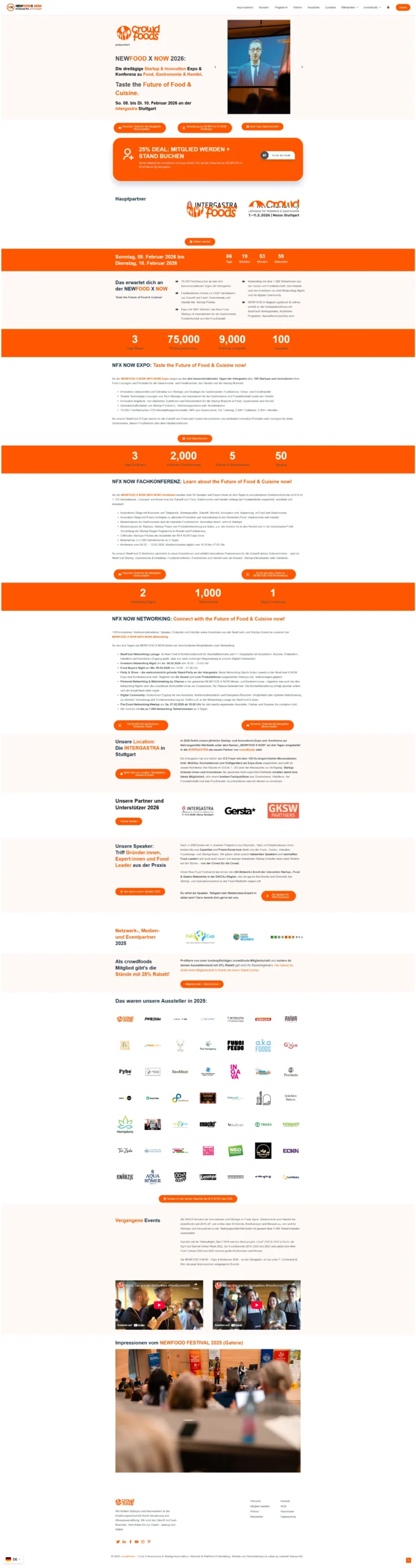 Für NewfoodX haben wir die komplette Eventplattform für die NewfoodX Konferenz auf der Intergastra 2026 individuell konzipiert, gestaltet und umgesetzt. Die Seite wurde vollständig maßgeschneidert auf WordPress- und WooCommerce-Basis entwickelt und bildet alle zentralen Eventfunktionen ab.
