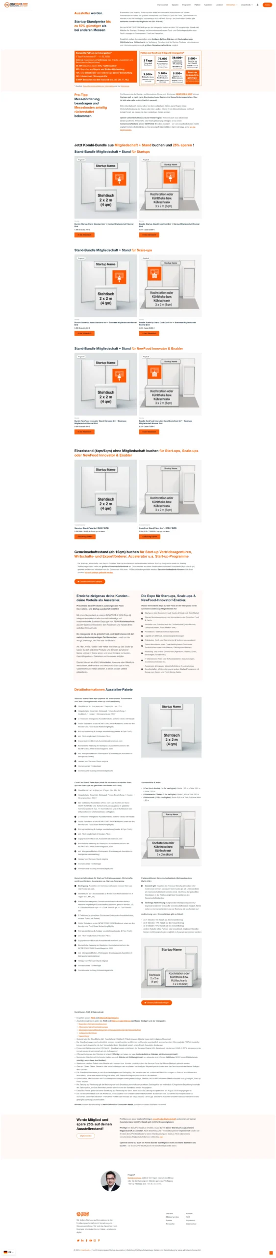 Besucher:innen können über die Plattform sowohl Tickets als auch Ausstellerstände direkt online buchen. Außerdem wurden übersichtliche Bereiche für Speaker, Sponsoren, Programm, Special Events und Partner integriert. Das Design wurde speziell für die Food- und Startup-Szene entwickelt und kombiniert starke visuelle Elemente mit einer klaren, intuitiven Nutzerführung.